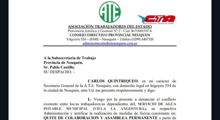 En lo que denuncia el gremio se destaca la falta de insumos, elementos y maquinarias en un sector critico para la población como es el agua potable.