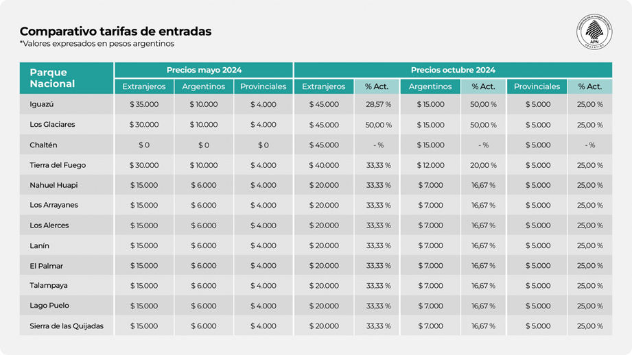“Lo que estamos promoviendo es que la gente visite los Parques más veces y se quede por más tiempo. Así, por el precio de dos días, pueden quedarse tres días; por el precio de tres días y medio, una semana entera; y un pase anual ilimitado, por el precio de cinco días”, destacó el presidente de Parques Nacionales, Cristian Larsen.