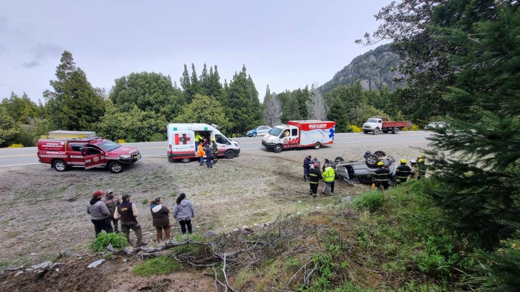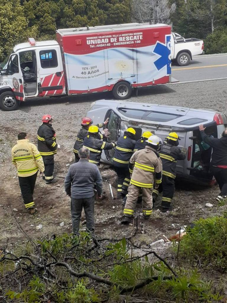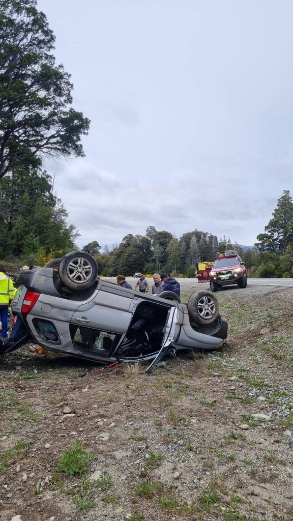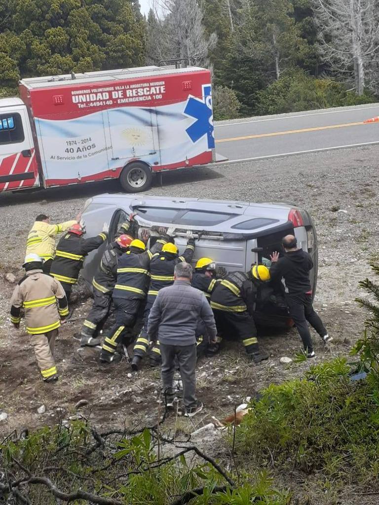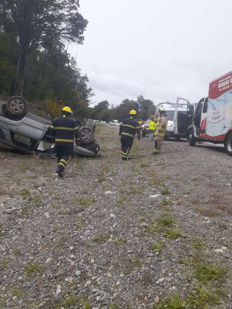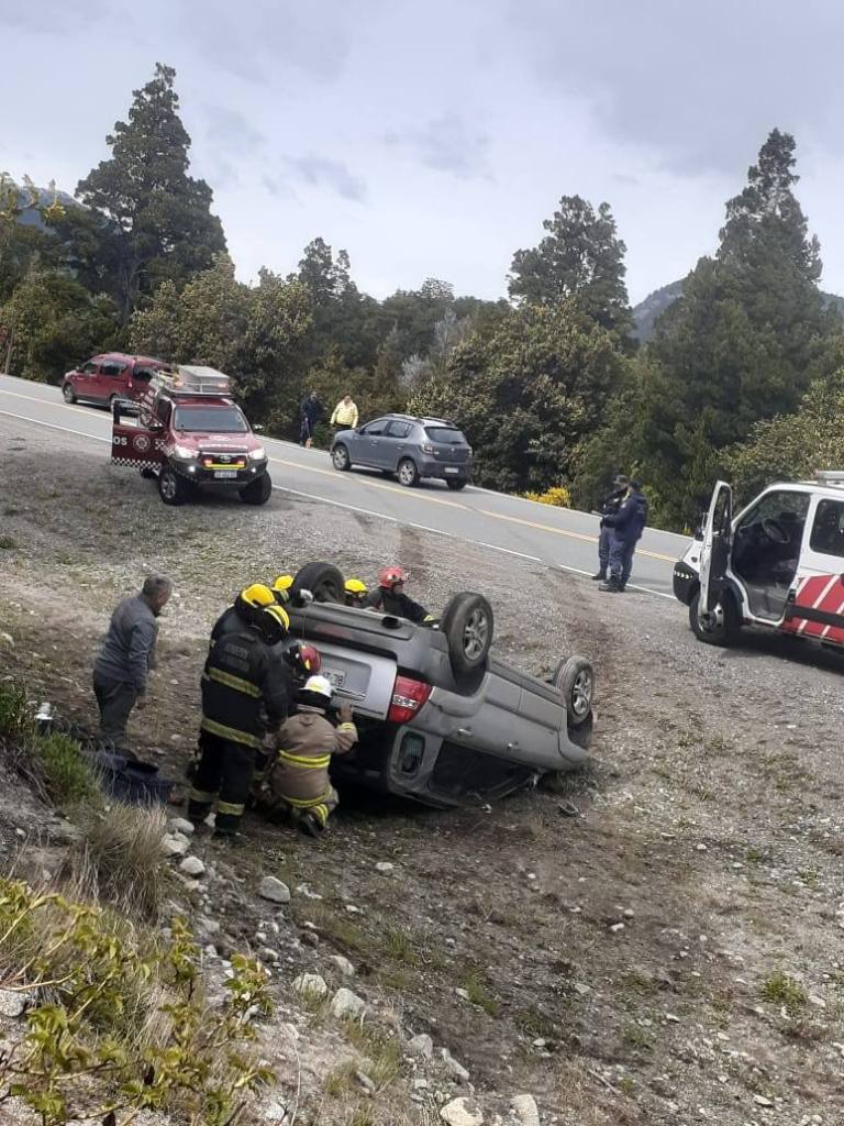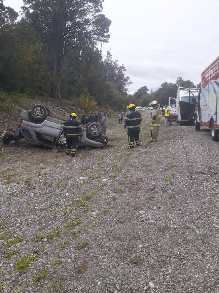 En el día de hoy alrededor de las 10.30 horas, los bomberos de Villa la Angostura recibieron un llamado telefónico informando de un auto vuelco sobre la ruta 40 km 2090, zona península de Huemul.