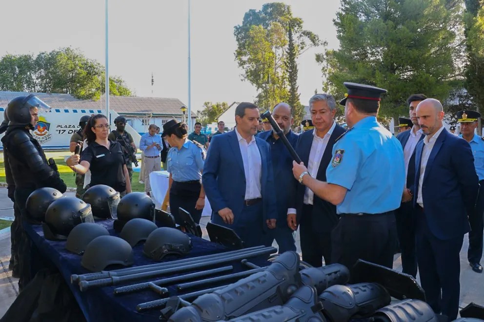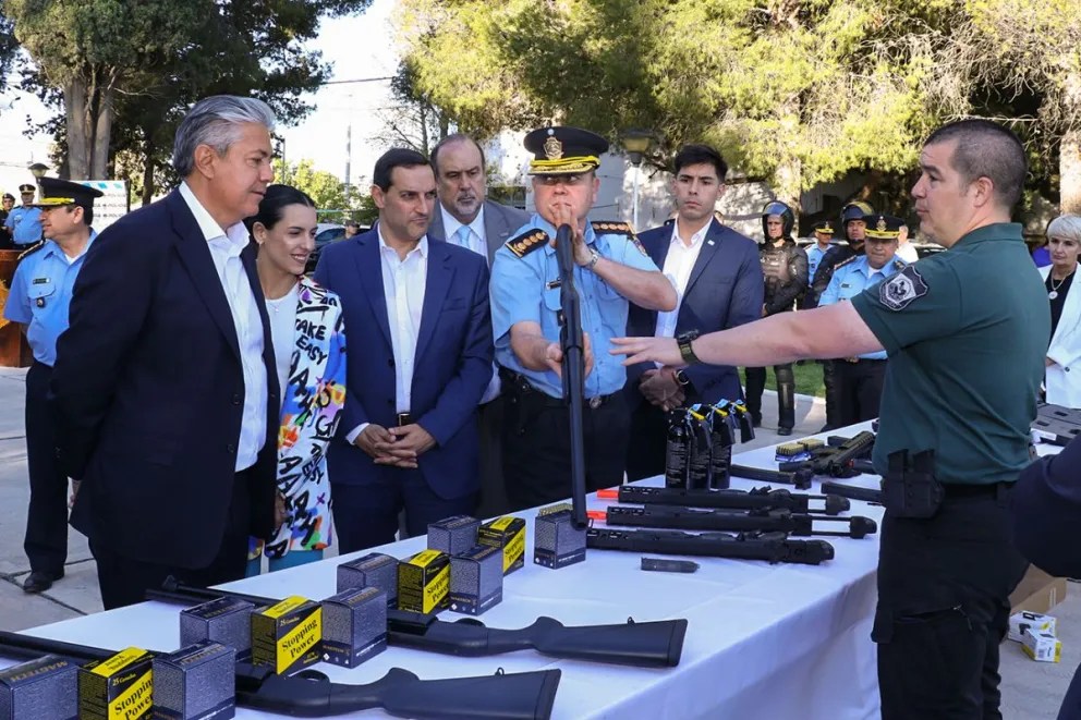 Como parte de las acciones destinadas a dotar a la fuerza de seguridad provincial con mayor equipamiento, el gobernador Rolando Figueroa y el ministro de Seguridad, Matías Nicolini, entregaron armamento, proyectiles, escudos, chalecos y otros elementos de protección para la policía neuquina.