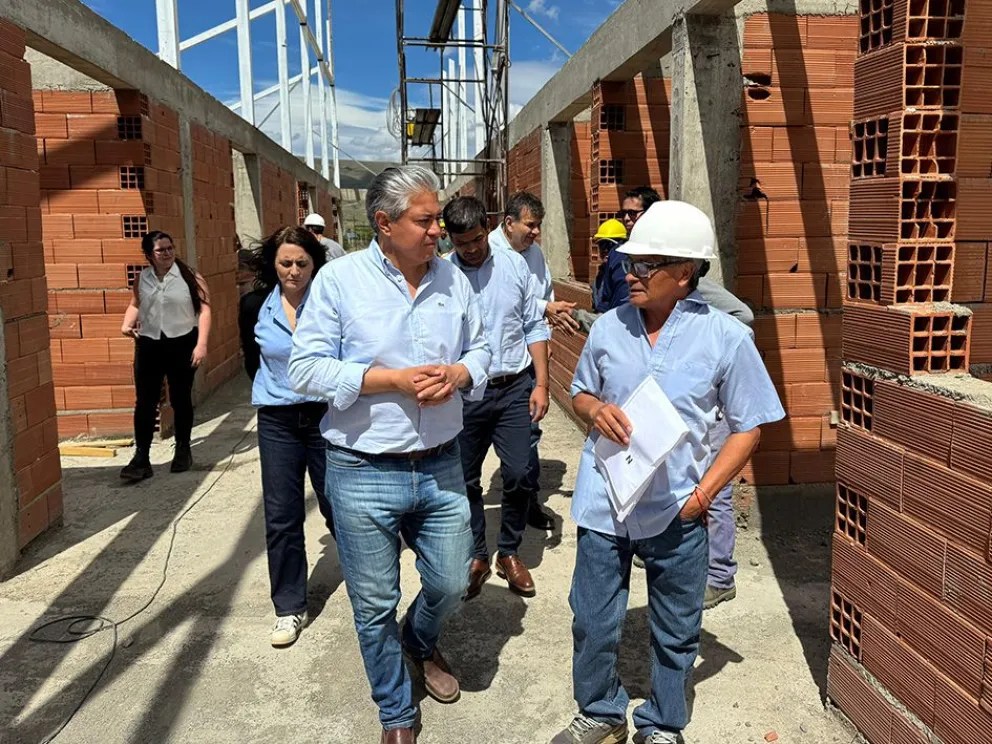 Figueroa llegó por la tarde hasta la Escuela Primaria en el barrio Neuhuen Che de Junín de los Andes, donde se ejecuta el nuevo edificio.