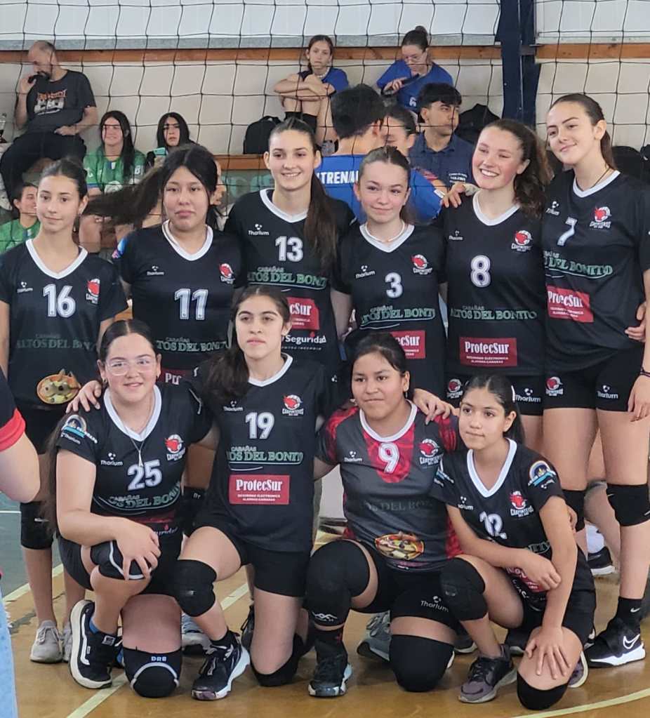 Este equipo ya se viene formando con un trabajo desde hace 2 años, pero con una marcado crecimiento en el juego en este último año. En la primera etapa de la Liga quedaron en el segundo lugar y en esta última etapa quedaron 1ras en la tabla con 19 puntos. Lo que nos daba la seguridad de que iban a poder competir y nos ilusionaba también con la posibilidad del campeonato. Al igual que las U 14 el domingo se definía el campeonato y tanto en las semis como en la final jugaron muy concentradas, fueron agresivas en el juego no teniendo instancias complicadas en los sets y de esta manera pudiendo reflejar el gran trabajo que este equipo realizo durante todo el año y en especial en esta última parte. Cosa no menor porque sabemos que no siempre los equipos pueden plasmar en la cancha el trabajo que realizan. Las competencias en las que participamos a lo largo del año sin duda nos permitieron tener un gran volumen de juego, tuvimos un torneo en Córdoba, donde los resultados no nos acompañaron y no pudimos en ese torneo desplegar todo el juego, luego también la instancia de las Finales de los juegos Neuquinos, se soltaron y se mostraron en toda la etapa clasificación y de semis con un juego intratable: prolijas, con muy buenos saques y recepciones en general. No se pudo en la final (básicamente por nervios), perdiendo contra El Huecu y coronándose Sub Campeonas Provinciales. En palabras de la entrenadora Nati García, esa derrota “enseñó” y de esa experiencia las chicas salieron más fuertes y lograron una mayor seguridad, consolidándose como equipo para poder jugar esta final y lograr el objetivo de coronarse Campeonas de Voley Sub 16 2024 de la Liga de Bariloche.