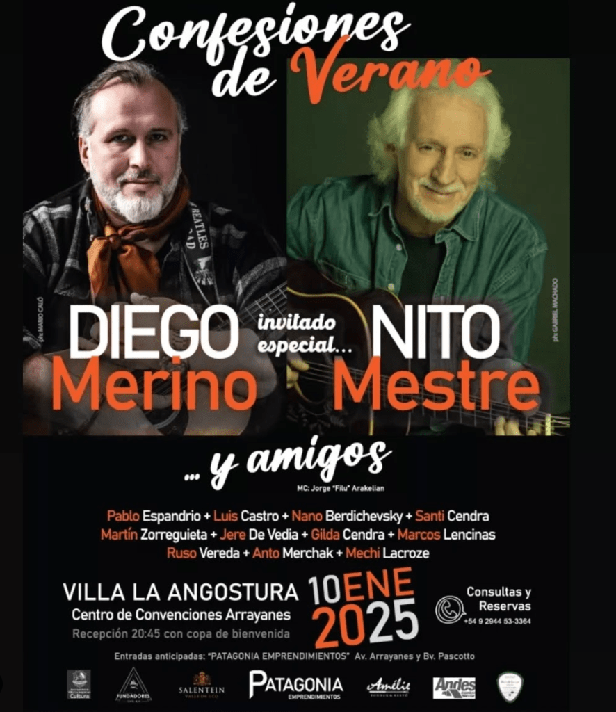 Hoy se presentan en el centro de convenciones arrayanes, Nito Mestre Junto a Diego Merino y Amigos, un repaso por las canciones mas conocidas del histórico representante del rock argentino.