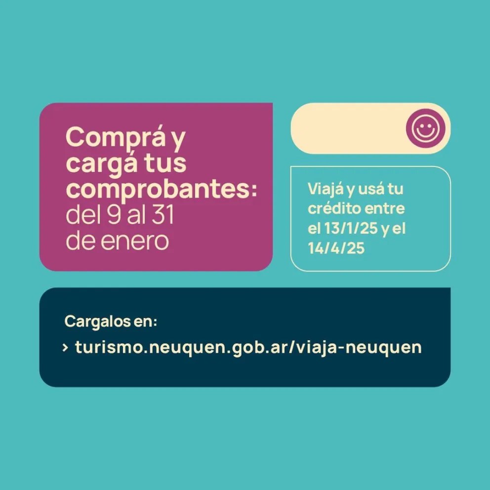 El programa Viajá Neuquén ofrece la devolución del 40 por ciento de los gastos realizados en servicios turísticos dentro de la provincia. Está dirigido a mayores de 18 años residentes en la provincia y es un beneficio intransferible.