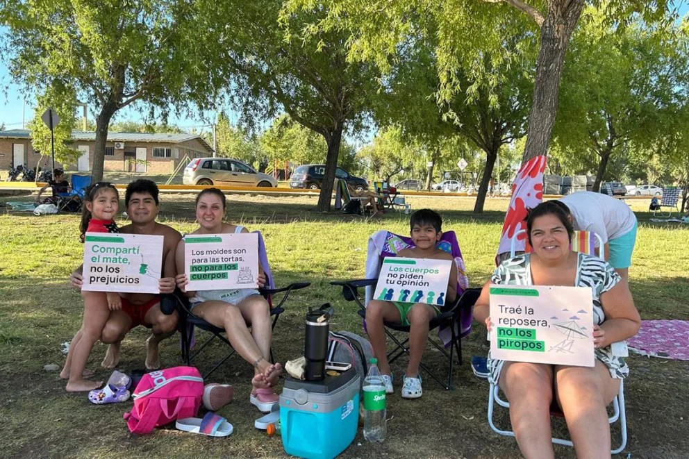 La propuesta invita al público a que se saque fotos con carteles que contienen frases que invitan a cuestionar y problematizar sobre roles y conductas, como “Todos los cuerpos llegan al verano”, “Opiná sobre el clima, no de los cuerpos”, “Traé la reposera, no los piropos”, y más.