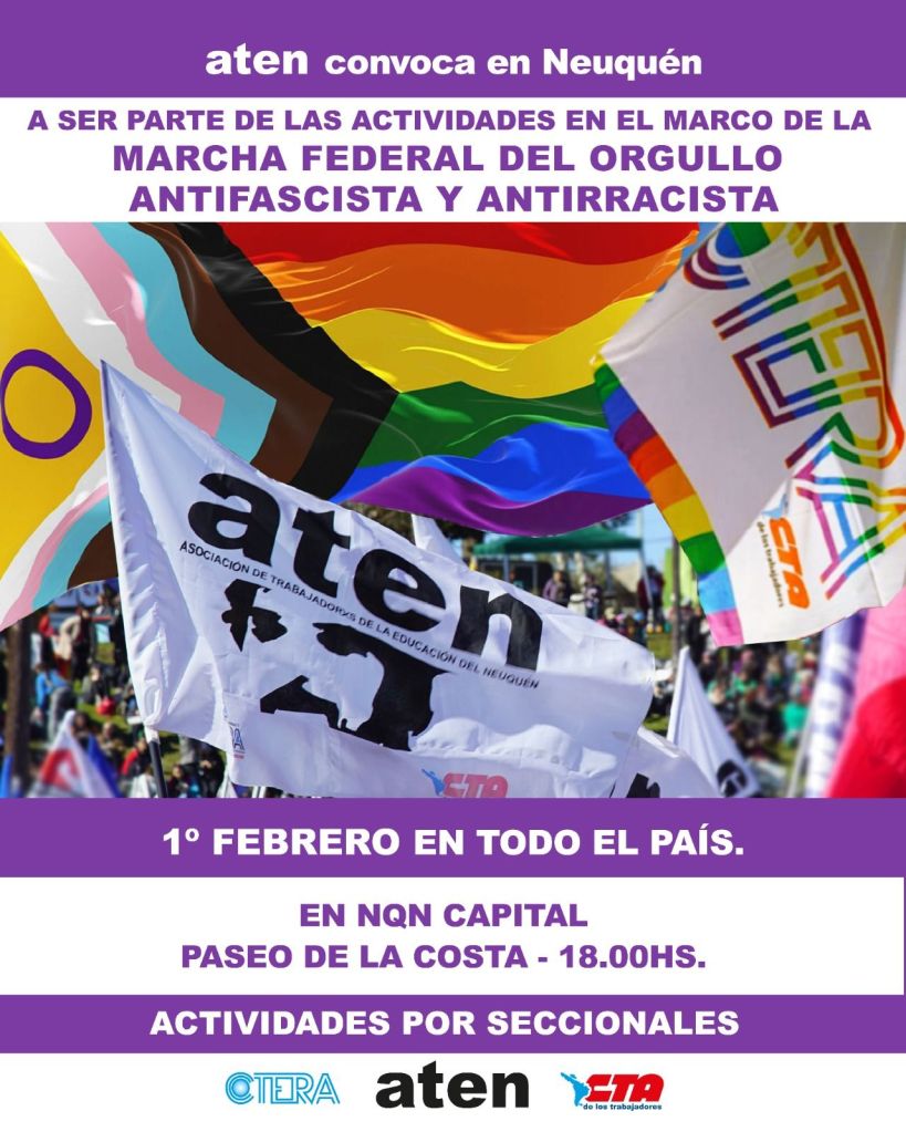 El sindicato que representa a los Docentes Neuquinos, convoca a la marcha del 1 de Febrero con la consigna de «Seguimos levantando las bandera en defensa de la democracia, las leyes de igualdad y nuestros derechos».