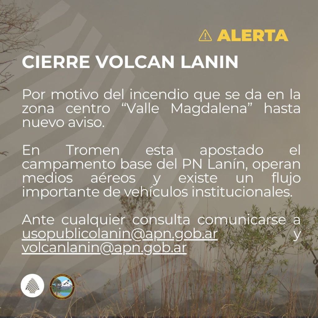 Ante cualquier consulta comunicarse a usopublicolanin@apn.gob.ar y volcanlanin@apn.gob.ar