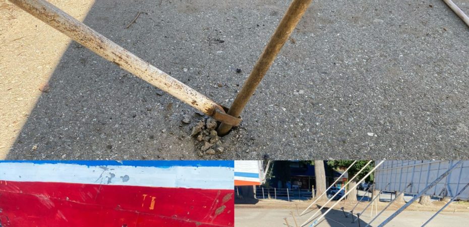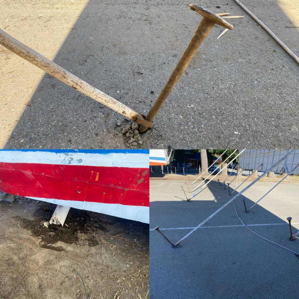 Es increíble y las fotos hablan por si mismas como rompieron todo y los funcionarios municipales que insistimos, tienen sus sillas a pocos metros, no impidieron ni hicieron nada. Ni siquiera el ruido que seguramente hicieron al romper en VARIOS lugares el piso de Cemento para colocar estacas los alerto y los movió de sus puestos.