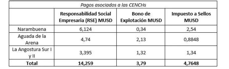 Respecto a los pagos asociados al otorgamiento de las CENCHs, se pueden observar detalladamente en el siguiente cuadro: