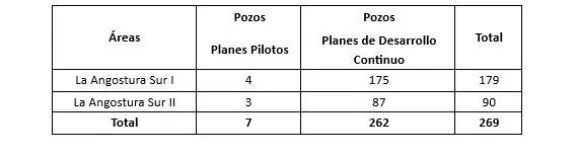 En lo que se refiere a La Angostura Sur II, se proyecta perforar, completar y poner en marcha 3 pozos horizontales. Estos pozos contarán con ramas laterales de 2000 metros y con 28 ramas de fractura. Mientras que, en la etapa de desarrollo continuo, se perforarán 87 pozos horizontales. La inversión total del proyecto es 1.951 millones de dólares.
