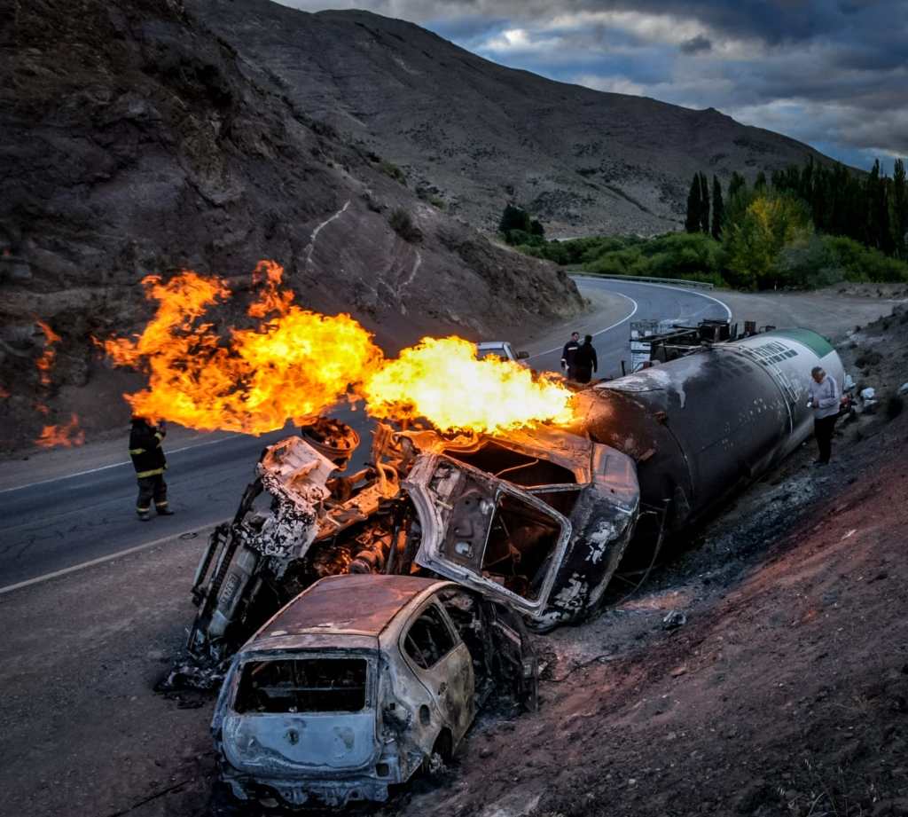 Desde la institución mediante un parte de prensa anunciaron la finalización de las tareas en la zona de Villa Llanquín donde un auto particular se incustro en la parte trasera de un camión cisterna que transportaba gas hacia chile.