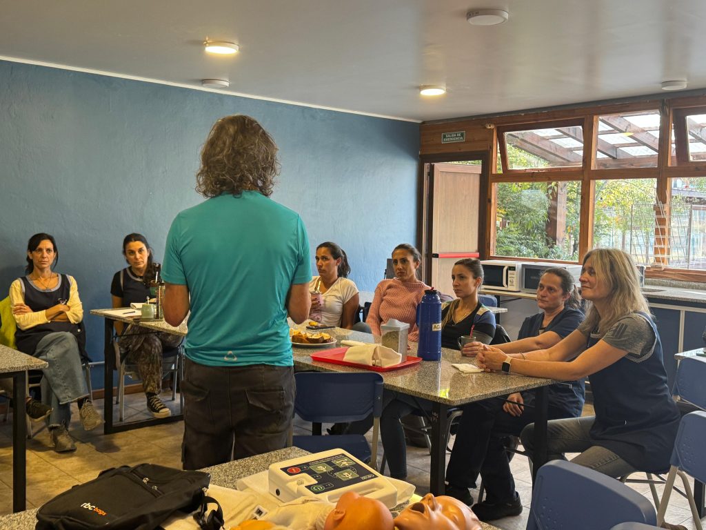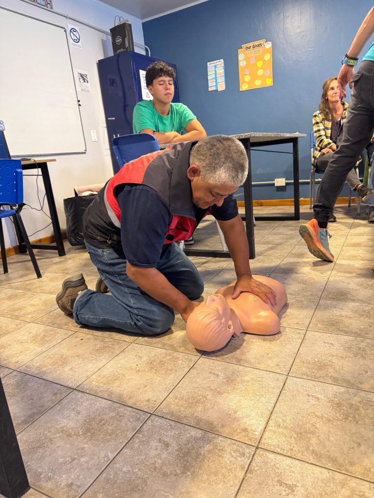 La Dirección de Protección Civil llevó a cabo hoy una capacitación crucial para los docentes de la Escuela de los Andes, enfocada en la Reanimación Cardiopulmonar (RCP) y el uso del Desfibrilador Externo Automático (DEA).