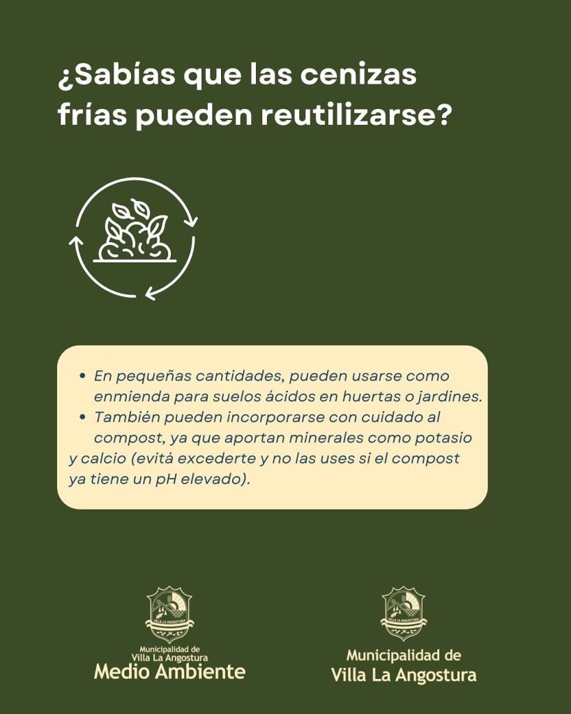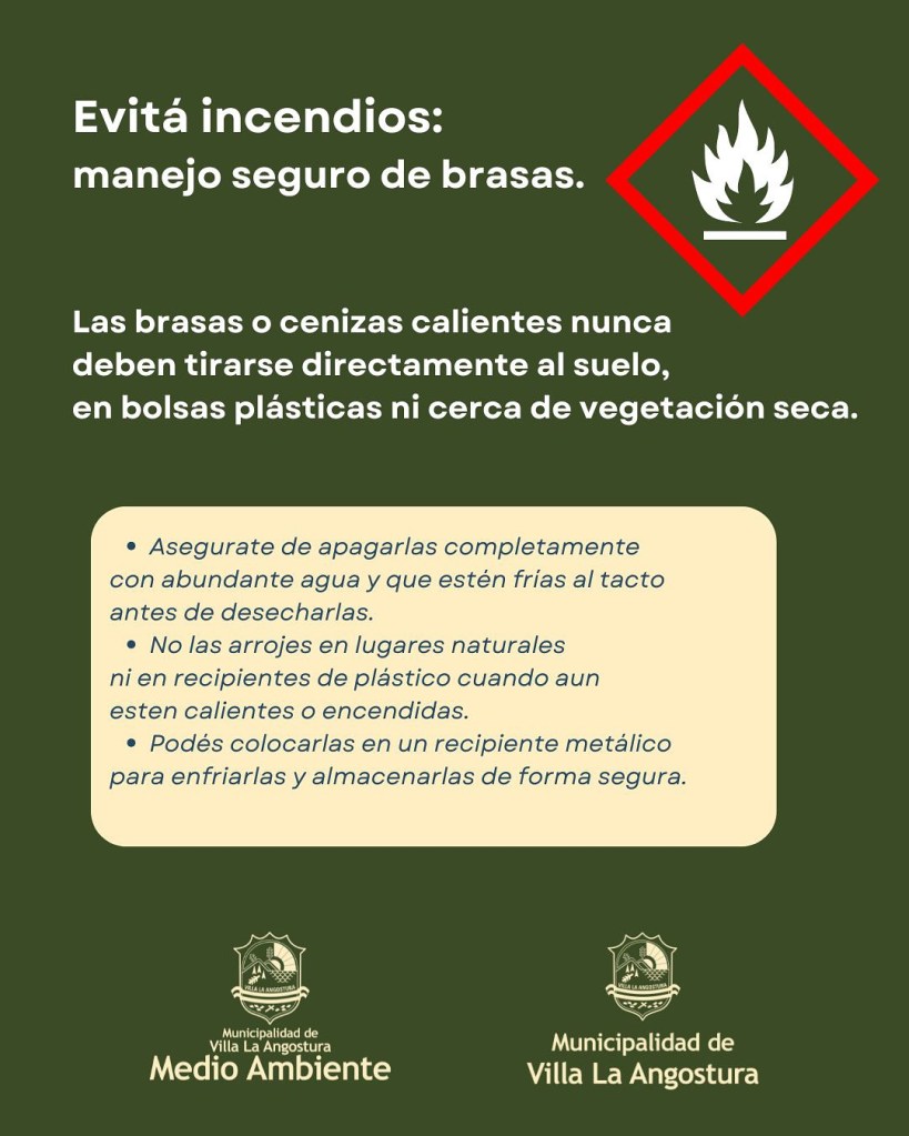 Recordamos a la comunidad que las brasas o cenizas calientes NUNCA deben tirarse directamente al suelo, en bolsas plásticas ni cerca de vegetación seca.