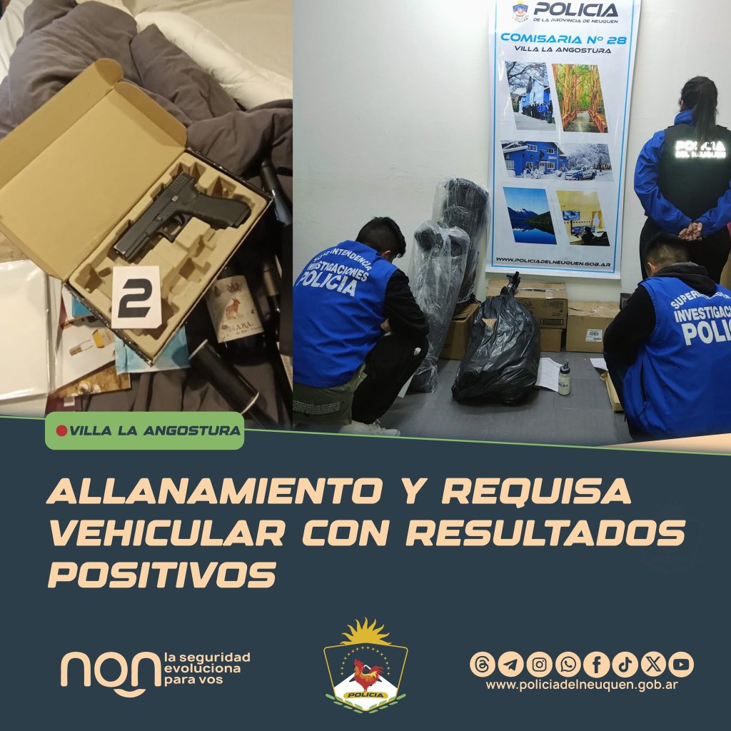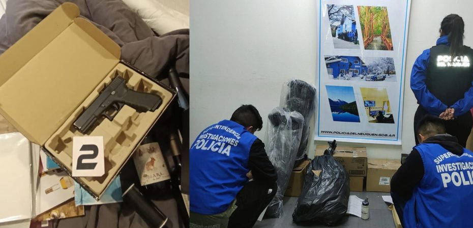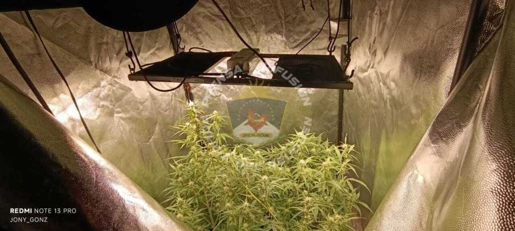Tras la denuncia, personal de la unidad Nahuel Huapi logró identificar el rodado y detener al presunto autor en la Ruta Nacional 40, frente al destacamento local. A partir de esa detención, se realizó una orden de allanamiento en el domicilio en la localidad de Villa la Angostura y en el vehículo, donde se secuestraron elementos relevantes para la causa: un chip de telefonía, un cuchillo, una réplica de pistola Glock de airsoft, municiones plásticas, y varias plantas de cannabis sativas de distintos tamaños, además de equipos de cultivo indoor.