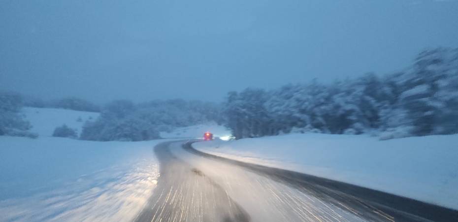 RN 231 tramo Aduana Límite con Chile calzada con nieve acumulada en cotas altas, personal y equipos de Vialidad Nacional trabajando, pronóstico de nieve ligera, baja adherencia, Transitable con MÁXIMA PRECAUCIÓN PORTACIÓN OBLIGATORIA DE CADENAS Paso Cardenal Samore Habilitado para todo tipo de vehículos