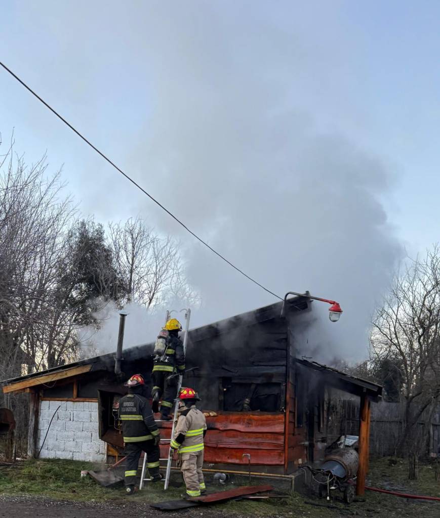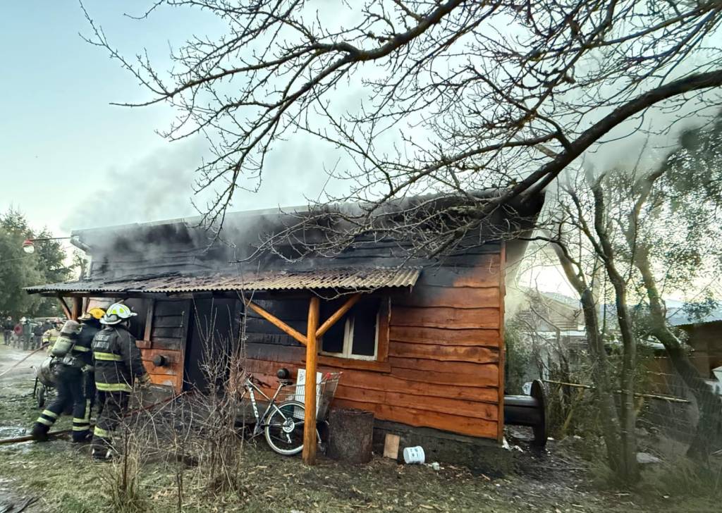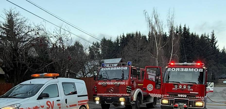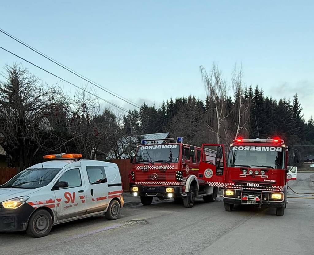 Ayer Domingo 29, Bomberos arranco la mañana con el llamado alertando por un incendio estructural de una vivienda particular, totalmente de madera en la zona del Cruce en Villa la Angostura, Calle Del Chilco.