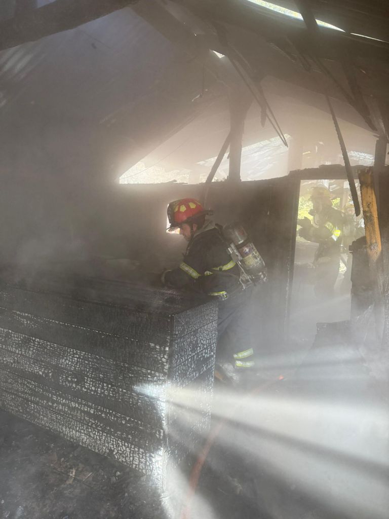 Al arribar al lugar, la primera dotación constata que un salón y o quincho se encuentra completamente comprometido por el fuego.