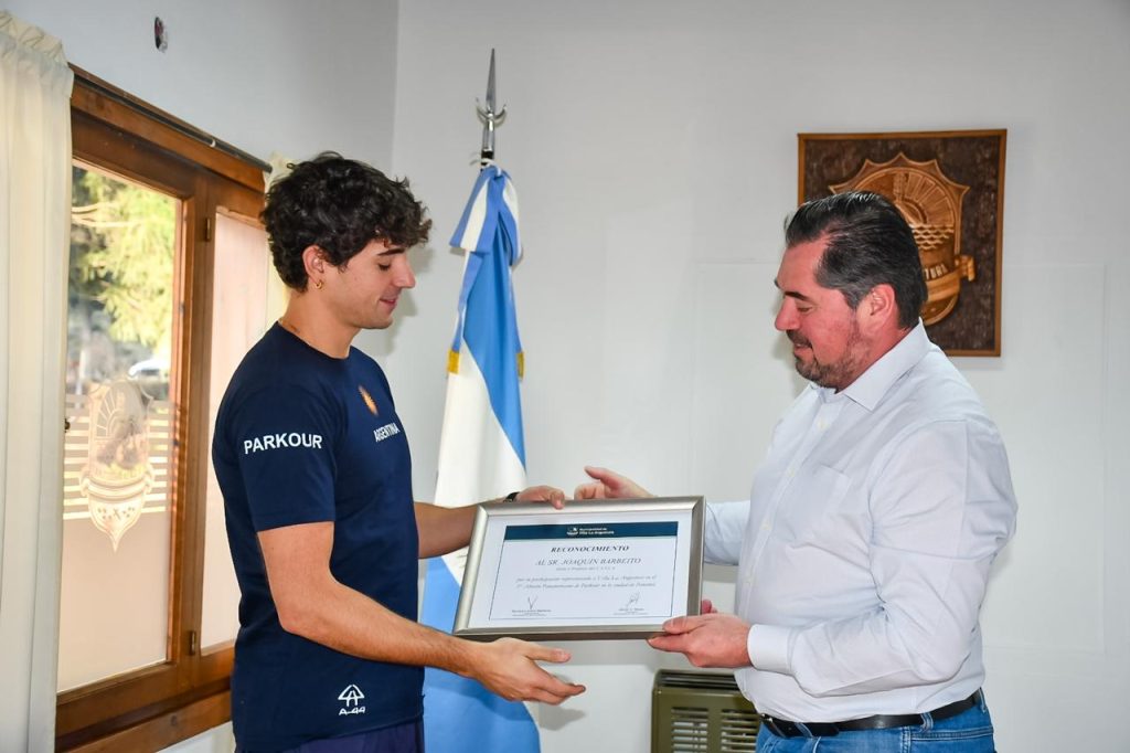 Esta mañana, el Intendente de Villa La Angostura, Javier Murer, realizó un importante reconocimiento al Deportista Joaquín Barbeito por su participación en los Juegos Panamericanos Panamá 2025.