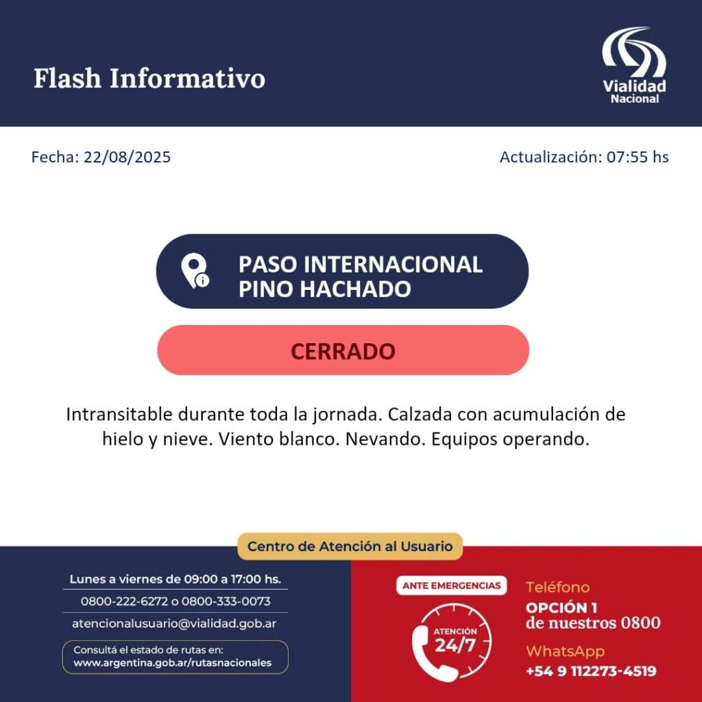 Se recuerda la portación obligatoria de cadenas, Aquí podrás ver la información completa del estado de rutas nacionales en la provincia: http://www.argentina.gob.ar/rutasnacionales