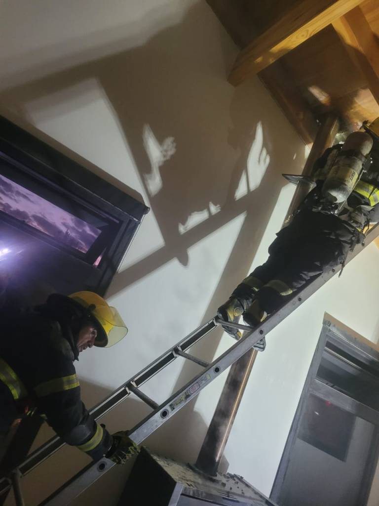 Bomberos Voluntarios recibió un aviso alrededor de las 20 horas, por parte de un vecino sobre un incendio en una chimenea.