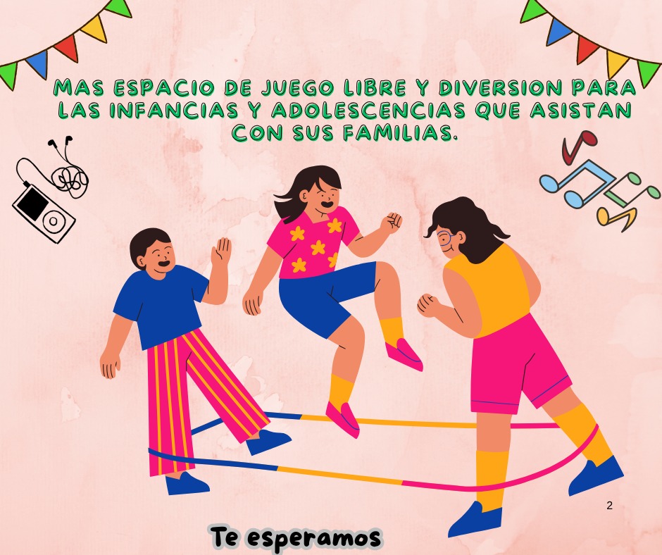 Además, estaremos llevando adelante un espacio de juego libre para las infancias y adolescencias que concurran con las familias. ¿De qué se trata? Es un ciclo de charlas y encuentros creado para abordar activamente los desafíos de la crianza en la adolescencia y para construir colectivamente herramientas de acompañamiento que fortalezcan el vínculo familiar.