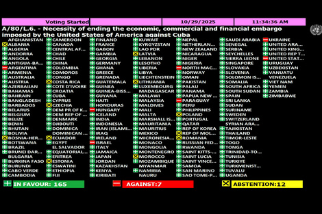 Argentina votó en contra de la resolución de las Naciones Unidas que condena el bloqueo económico a Cuba. No se trata aquí de juzgar a Cuba – ni su sistema, ni sus aciertos, ni sus heridas -, sino de mirar de frente lo que dice de nosotros esta decisión.