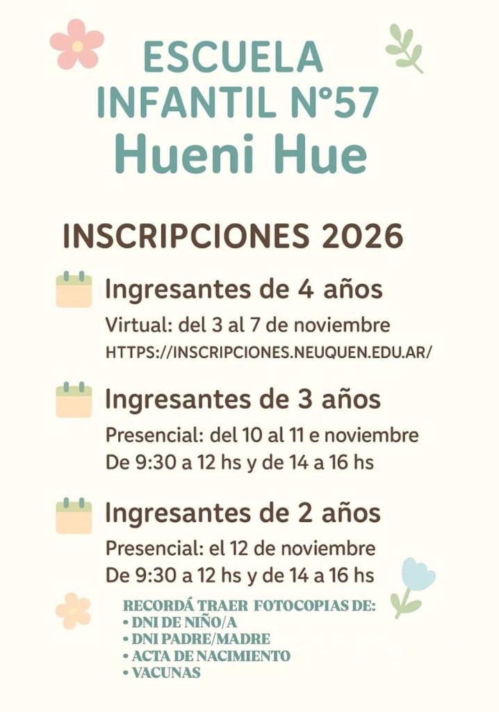 Para los Niños de 4 años la modalidad es On Line y del 3 al 7 de Noviembre los padres deberán ingresar al portal www.inscripciones.neuquen.edu.ar