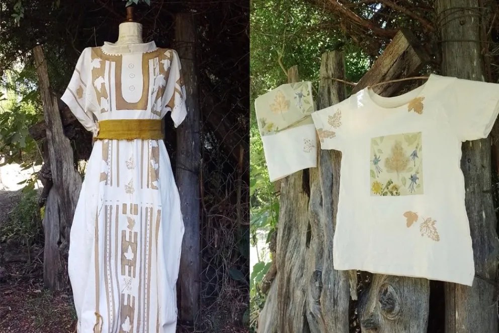 Su formación en Artes Plásticas, que inició en Brasil, donde aprendió pintura sobre seda natural, fue la base técnica que luego reconvirtió al mundo textil sostenible. El punto de inflexión llegó cuando integró la Asociación de Moda Sustentable Argentina y comenzó a preguntares qué fibras utilizaba, qué procesos, qué residuos generaba. Esa revisión ética derivó en un cambio profundo: “Ahora trabajo básicamente con tintas naturales del bosque y del compost”.