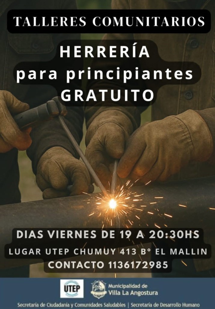 La Municipalidad de Villa La Angostura informa que se encuentra en marcha el Taller Comunitario de Herrería para principiantes, una propuesta gratuita destinada a vecinos y vecinas de la localidad.