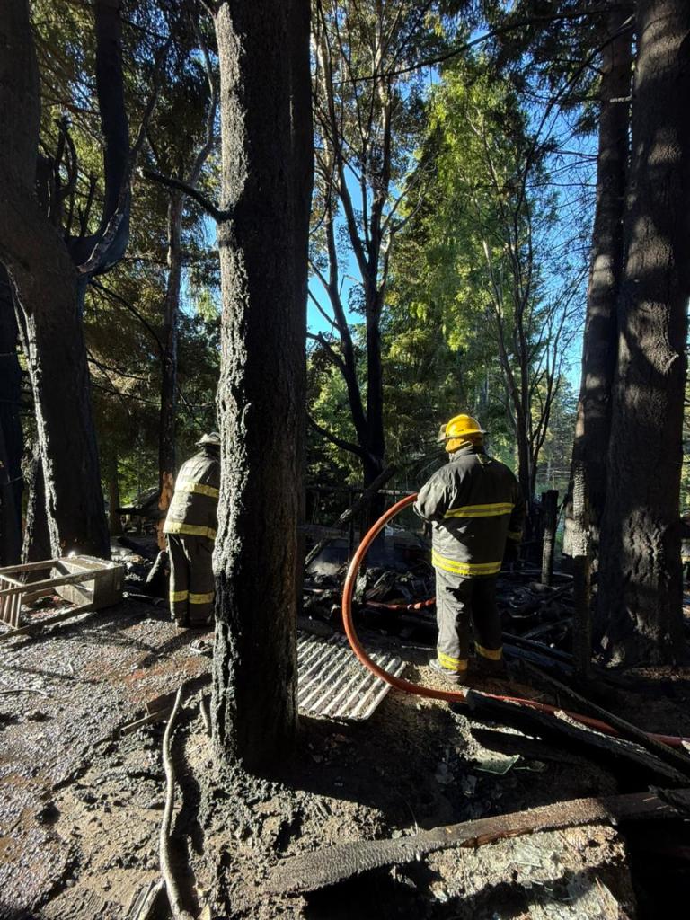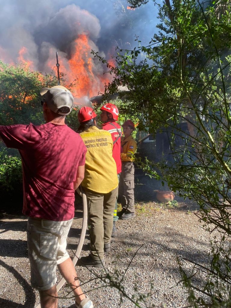 Al arribar al lugar constaron que la vivienda estaba siendo consumida por las llamas y que el fuego estaba propagándose al bosque contiguo, generando altísimas temperaturas que dificultaban la labor de los bomberos.