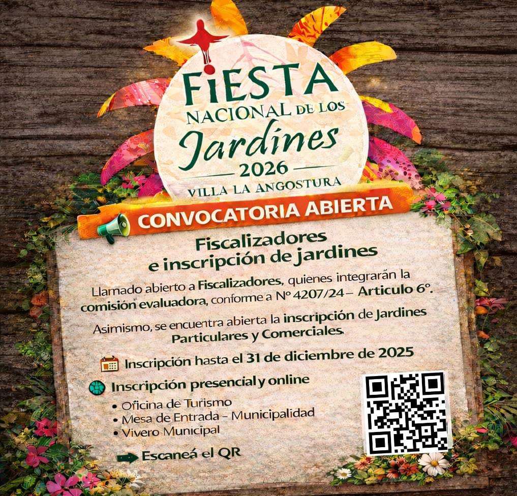 La Municipalidad de Villa La Angostura informa que se encuentra abierto el Llamado a Fiscalizadores para la próxima edición de la Fiesta de los Jardines 2026.