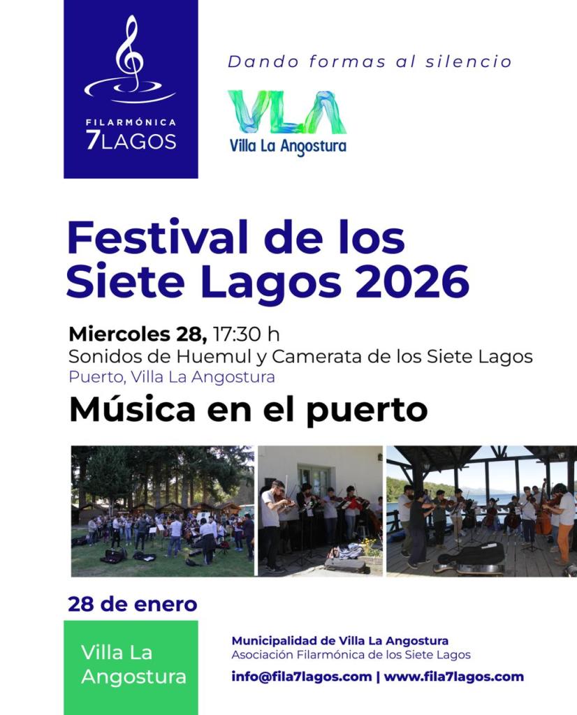 Este miércoles 28 de enero, a las 17:30 horas, el puerto de Villa La Angostura será escenario de una nueva propuesta cultural en el marco del Festival de los Siete Lagos 2026.