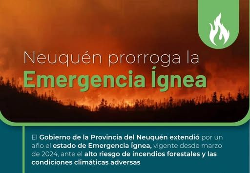Neuquén prorroga la Emergencia Ígnea por un año más, El Gobierno de la Provincia del Neuquén extendió por un año el estado de Emergencia Ígnea, vigente desde marzo de 2024, ante el alto riesgo de incendios forestales y las condiciones climáticas adversas.