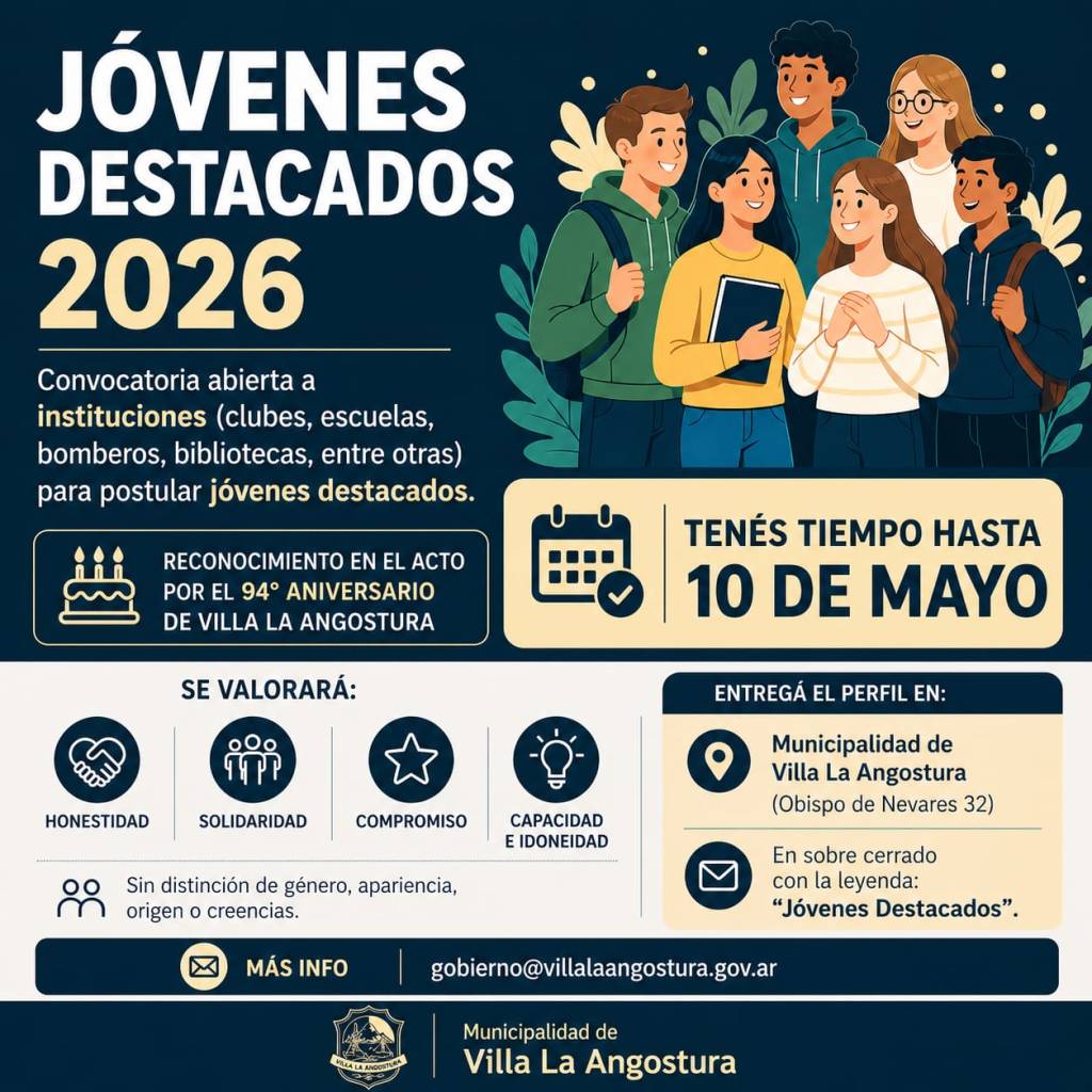 La Municipalidad de Villa la Angostura, convoca a todas las Instituciones a participar en el Certamen “Jovenes Destacados”.
