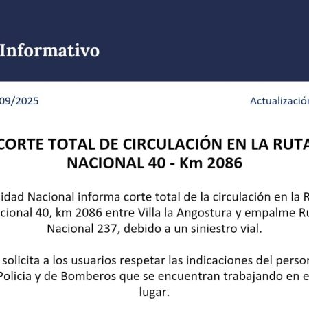 Domingo 28/9 10.30 hs. Corte Total de Transito en la Ruta 40 y el Cruce a Bariloche.