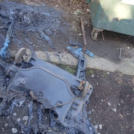 Perdida Total: Tiraron cenizas prendidas en un tacho de reciclado publico.