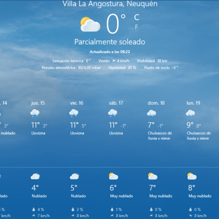 Categoría: Clima y condiciones del Tiempo en Villa la Angostura.
