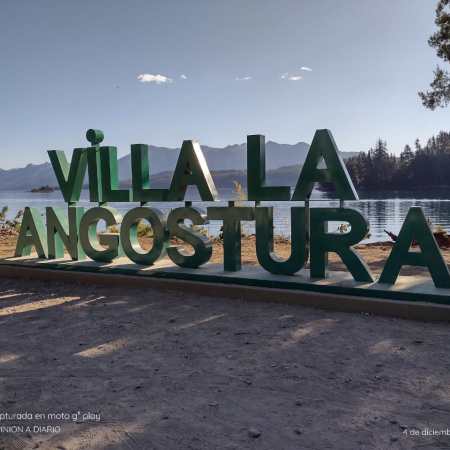 El cartel de letras Corpóreas «Villa la Angostura» ya forma parte del paisaje.