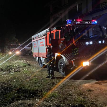 Bomberos Voluntarios controlo un incendio de Interface ayer a la noche en Las Piedritas. (Fotos e Info Bomberos Voluntarios)