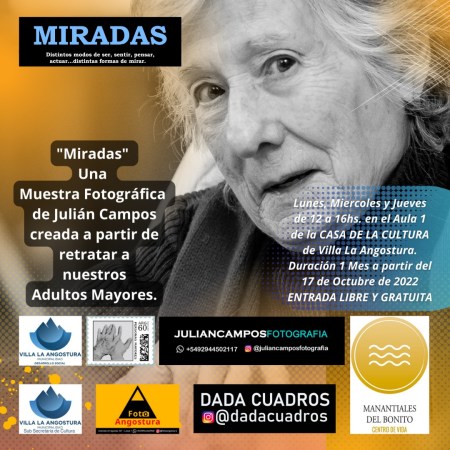 La Muestra Fotográfica «Miradas» con retratos del fotógrafo local Julián Campos, estará expuesta en Casa de la Cultura desde el próximo lunes