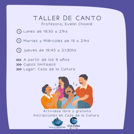 Angostura; Taller de Canto “Caja de Herramientas para el Cantante” a cargo de Cecilia Pastorino.