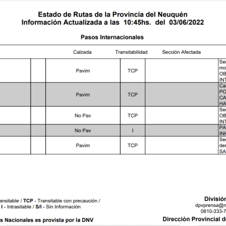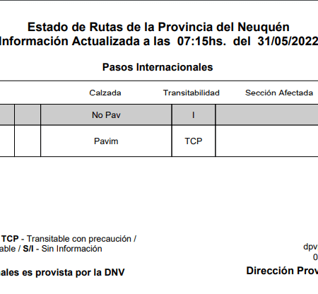 Estado de rutas en al region, (actualizado a las 10.45) camino a San Martin de los Andes y a Neuquen desde Angostura. (pasos internacionales)