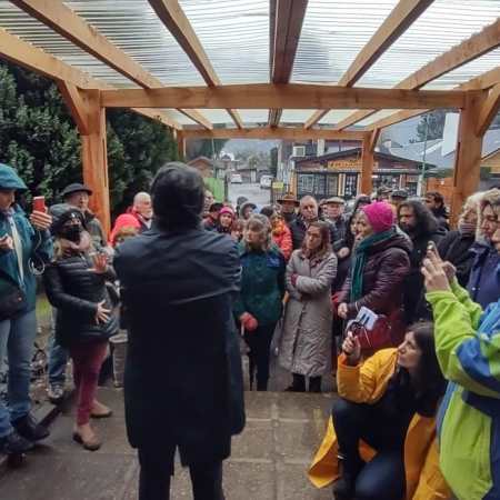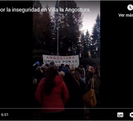 Momento donde los vecinos leen el reclamo por mas seguridad en la marcha del día de ayer en Villa la Angostura. (Video)