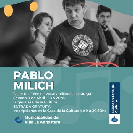 30 de marzo, 202230 de marzo, 2022 Opinión a Diario Cultura de Angostura invita a un Taller de “Técnica Vocal aplicada a la Murga” y un show en vivo con Pablo Milich