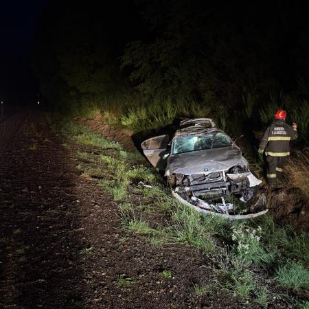 Despiste con Suerte en 7 Lagos, Bomberos Asistieron a un vehículo accidentado.