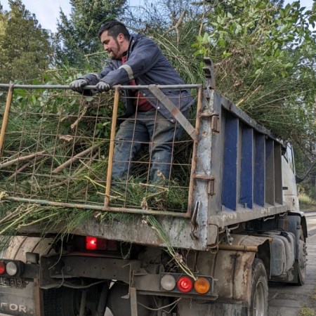 Atención la vecino de Angostura realizo tareas de limpieza en el Barrio EL Mallín y en el Bv Pascotto.