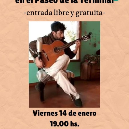 Damián Villegas, Guitarrista y compositor local, se presentará en el paseo de los artesanos de la terminal el 14 a las 19 Horas.