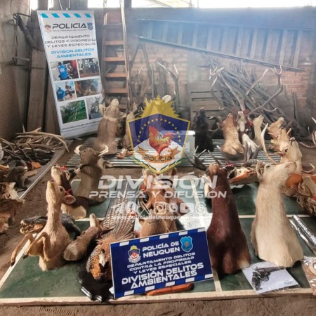 Pieles, astas, Cabezas disecadas, armas y hasta una fabrica de Silenciadores y municiones. Impactante operativo de la Policía del Neuquen en Junín.
