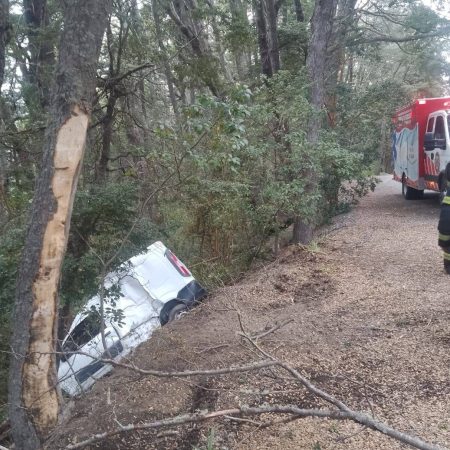Desbarranco una camioneta en la zona del Mirador del Espejo. 2 Ocupantes con heridas leves. Info y fotos Bomberos Voluntarios.