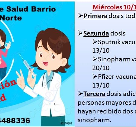 Mañana, Miércoles 10 de Noviembre, con turno telefónico, Vacunan contra el COVID 19 en el Centro de Salud de Barrio Norte.